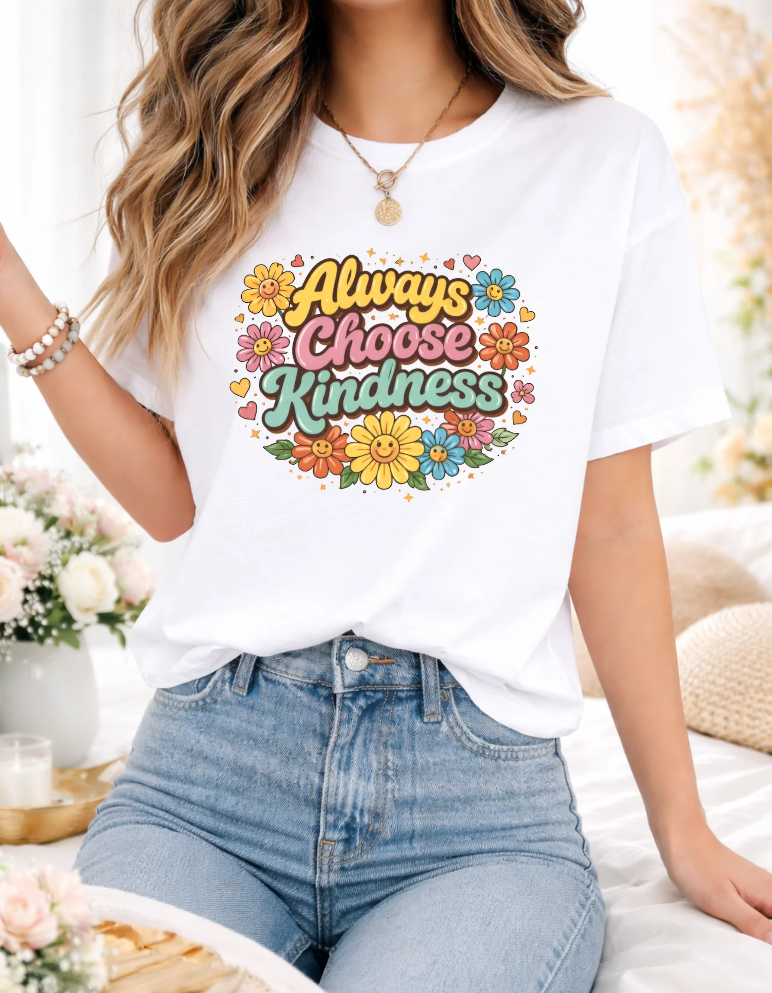 Kindness motivational Tee, Retro Floral T-Shirt for Women