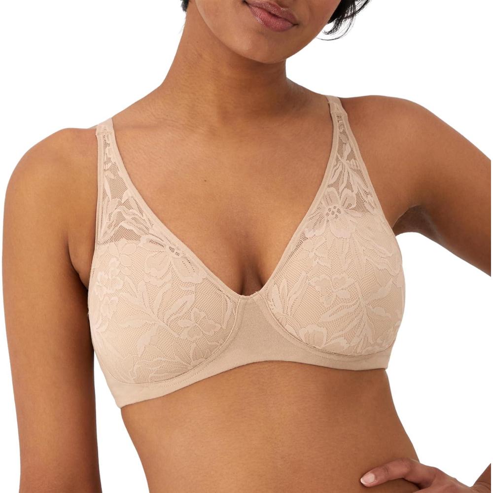 Bali Women’s Breathe Modal T-Shirt Bra, Breathable Wireless Bra, Full-Coverage Convertible Bra(Light Buff)