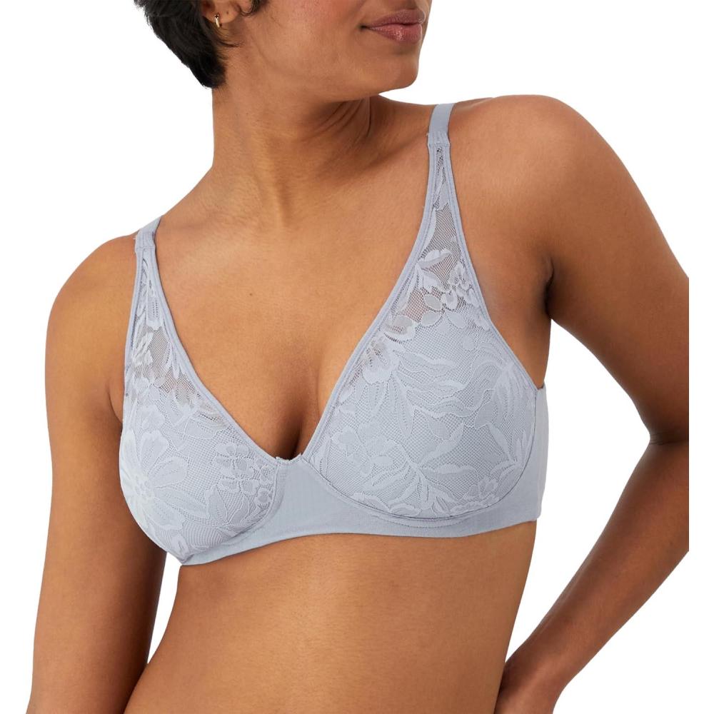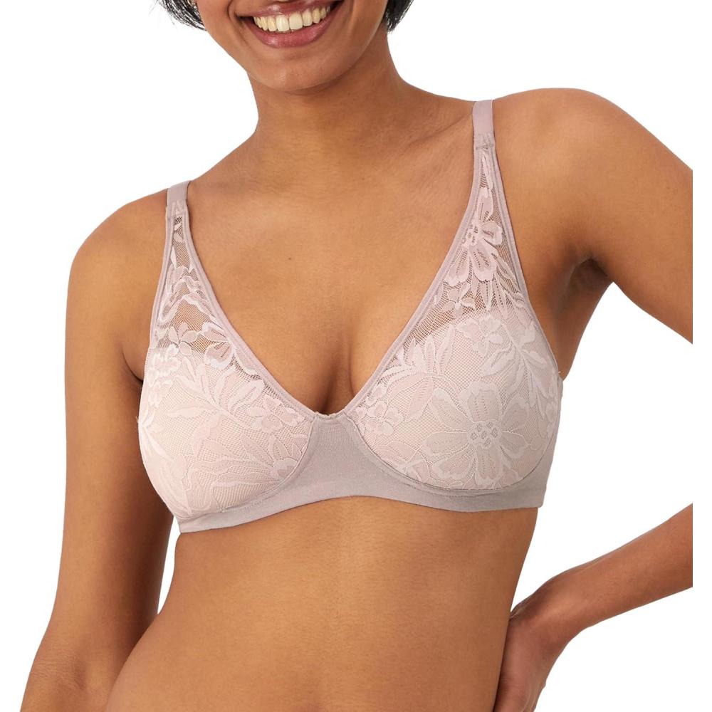 Bali Women’s Breathe Modal T-Shirt Bra, Breathable Wireless Bra, Full-Coverage Convertible Bra(Silver Satin)