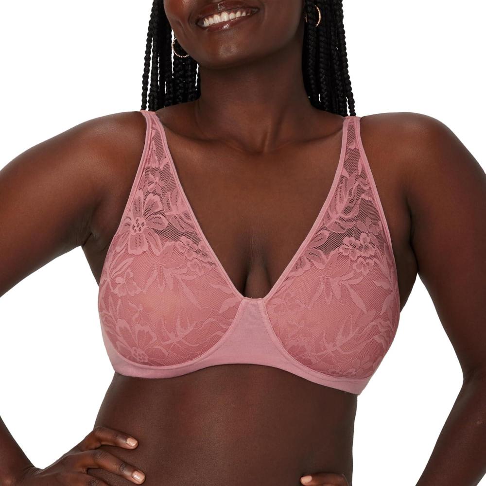 Bali Women’s Breathe Modal T-Shirt Bra, Breathable Wireless Bra, Full-Coverage Convertible Bra(Rose Tea)