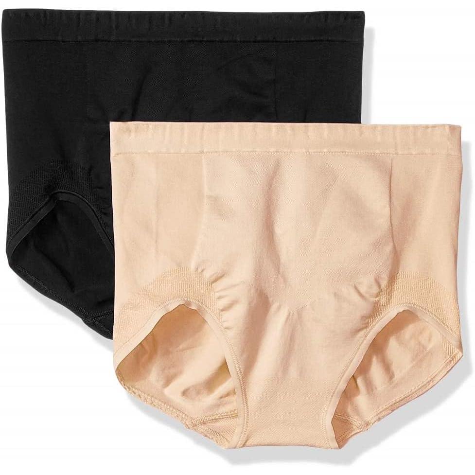 Bali Women’s Ultra-Firm Control Shapewear Brief, Seamless Shaping Underwear, 2-Pack(Black/Black)