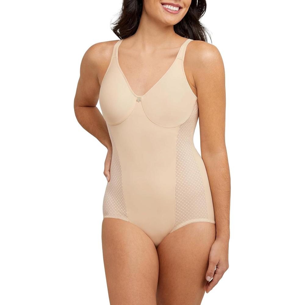 Bali Women’s Firm-Control Shapewear, All-In-One Body Shaper with Built-In Underwire Minimizer Bra(Soft Taupe)