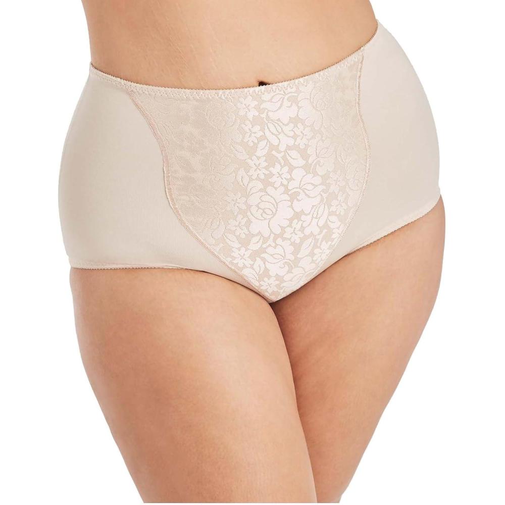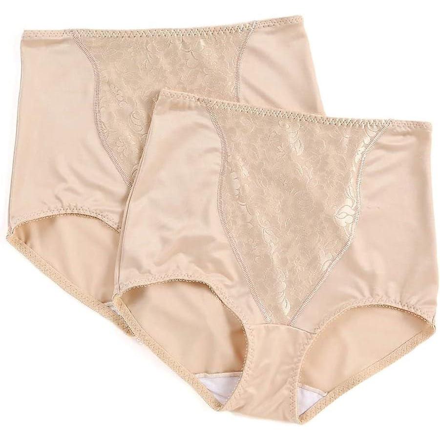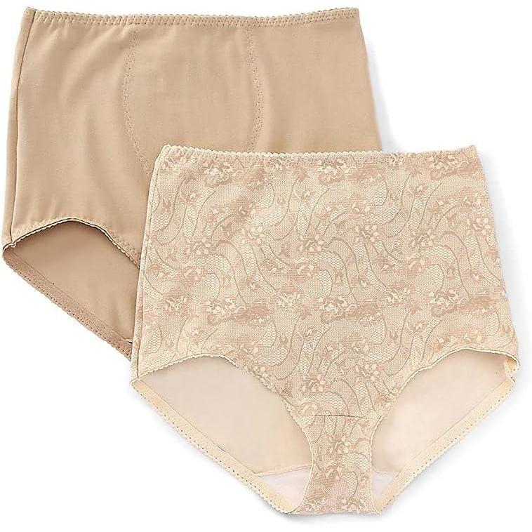 Bali Women’s Shapewear Brief, Light Control Smoothing Shapewear Underwear, Tummy Control 2-Pack (Colors May Vary)(Nude/Lace for Flowers)